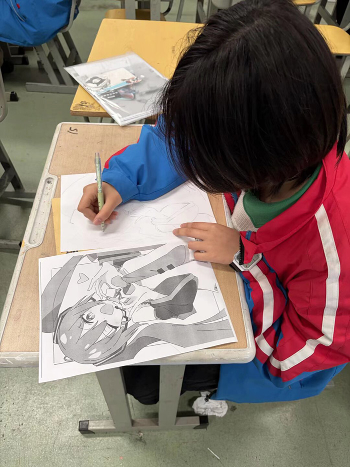 在美术社团课程的开篇,老师首先带领大家回顾了上学期的表情绘制基础,随后宣布本学期“我的本命角色”主题。通过展示多样画风的参考图,老师引导学生进行深入分析。紧接着,学生开始绘制铅笔草稿,以此确定构图、比例与动态。最后,老师进行巡视,一对一地纠正问题,确保每位学生的草稿都能过关。